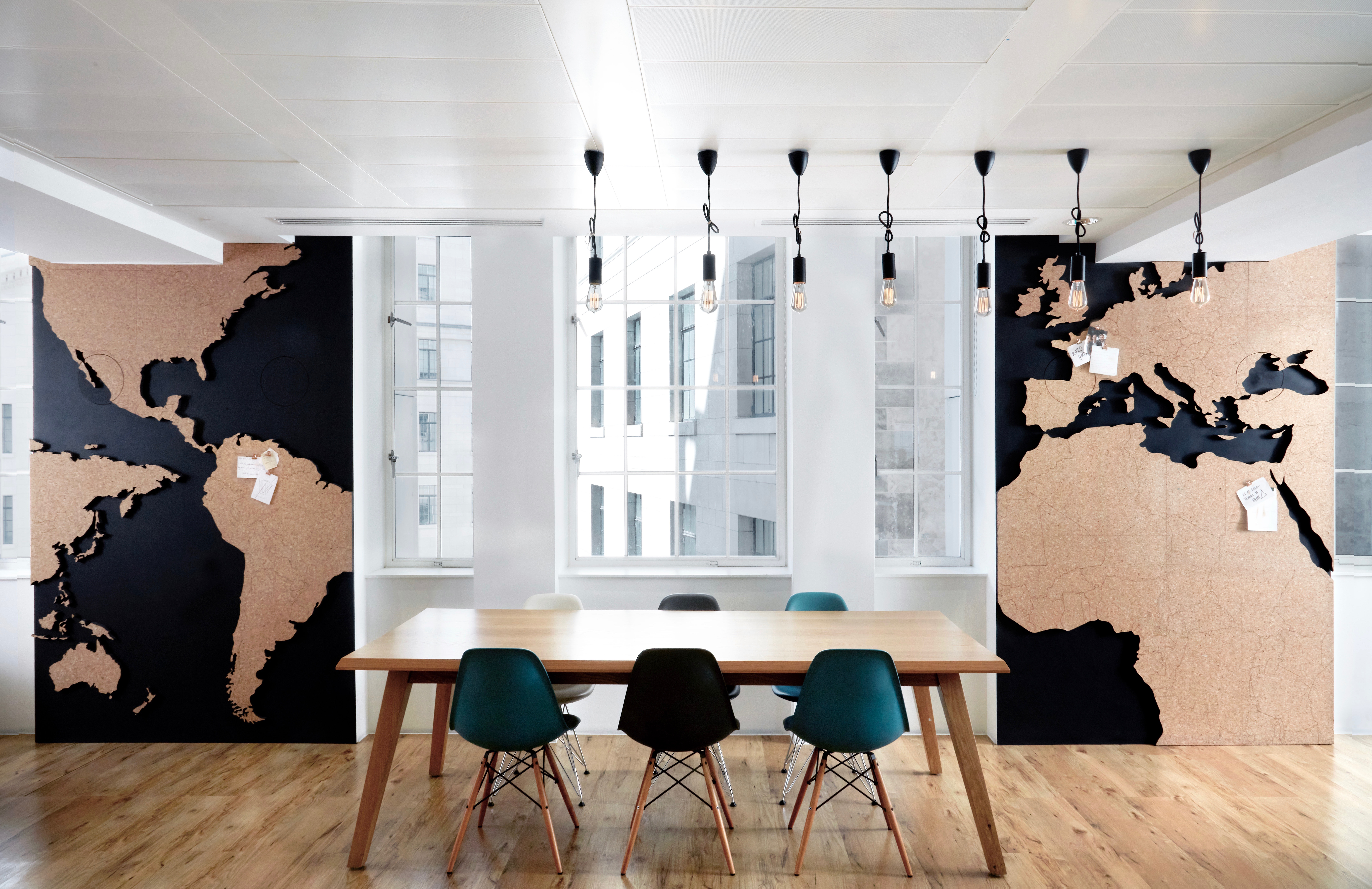 I was commissioned to design wall installation piece, that was both a decorative piece of design and functional within the office space. The hedge-fund who commissioned the piece wanted to track their footprint around the world as well as highlighting the parts on the globe where they had most contact with. The shape created is taken from the traditional map structure but the size of the continents vary depending on how important certain parts of the world were to the company. Some countries have also been cropped, and placed differently in order to create a more abstract approach to the traditional map.
